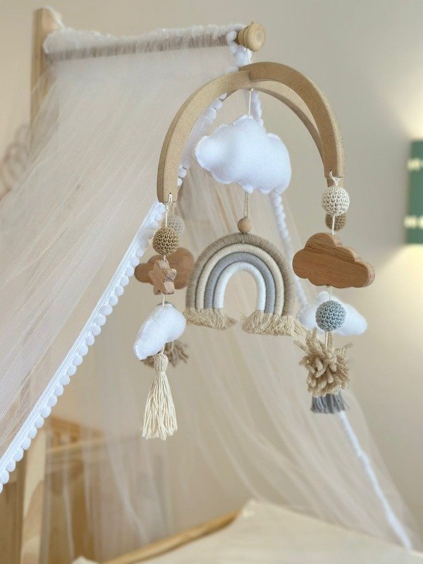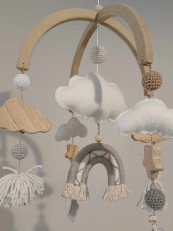 Crea un ambiente suave y acogedor en la habitación de tu bebé. Con un delicado arcoíris, nubes, estrellas, pompones y otros elementos suaves, aporta un toque mágico para un dulce sueño.